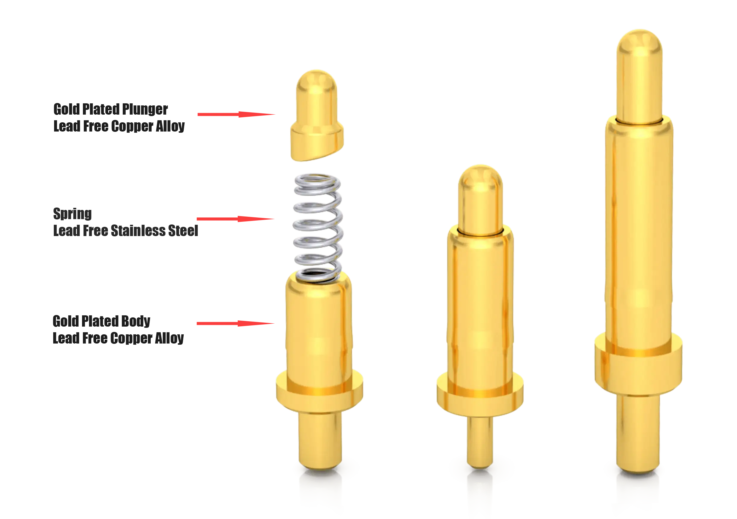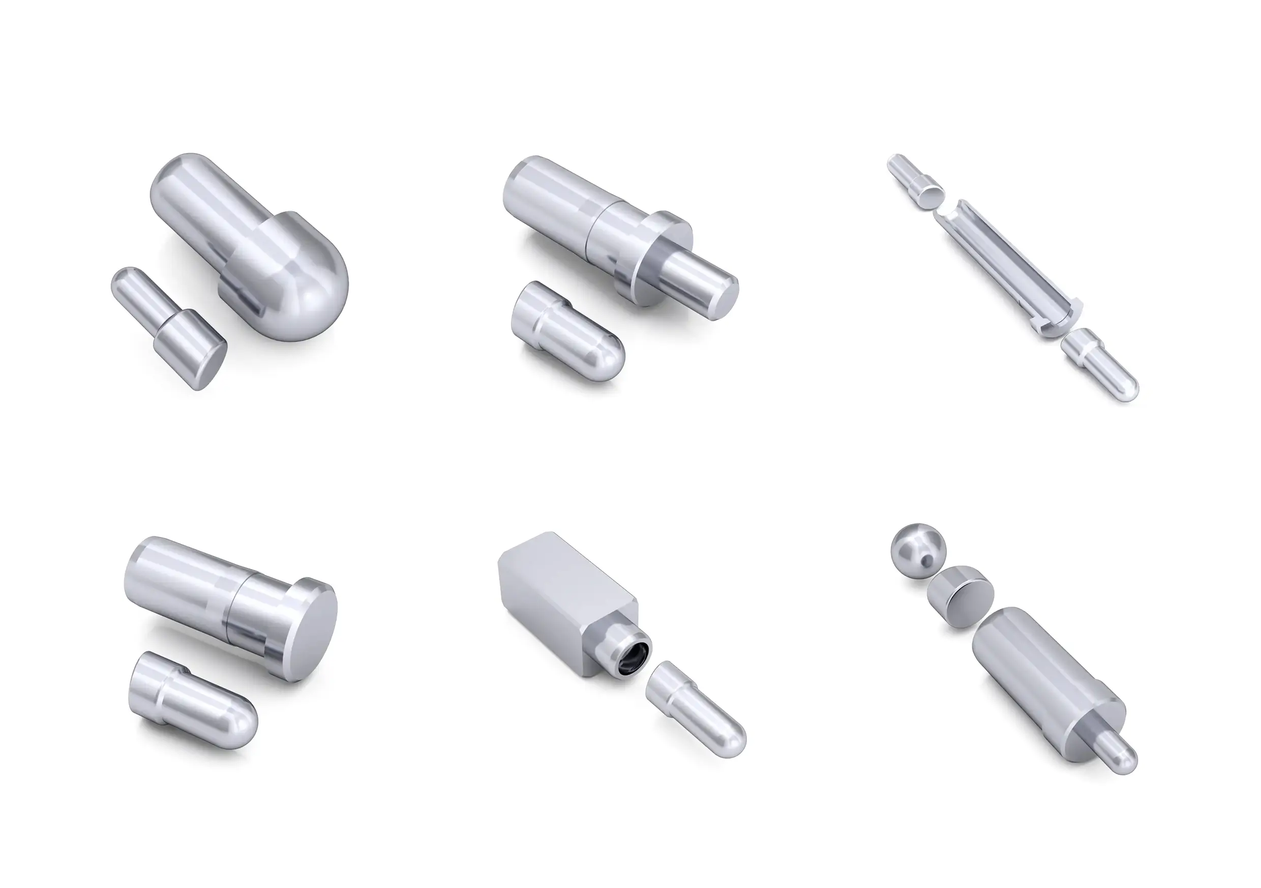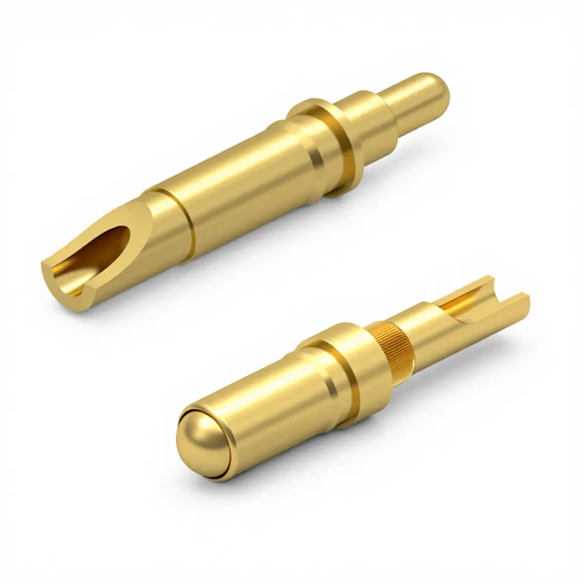 Internally each pin slides within a precision machined barrel and is guided by small clearances and features that keep the plunger centered. The compression spring sits between the barrel and plunger, providing a controlled contact force through the working stroke. Manufacturers use several internal geometries simple bevels, ball tip or copper ball interfaces, and inner hole guide features to reduce friction, stabilize lateral movement, and improve electrical contact area. Some multi part designs add a spacer or locking element to increase current capacity and durability. Tight machining tolerances, quality plating, and spring selection determine friction, wear, and consistent resistance over many cycles.