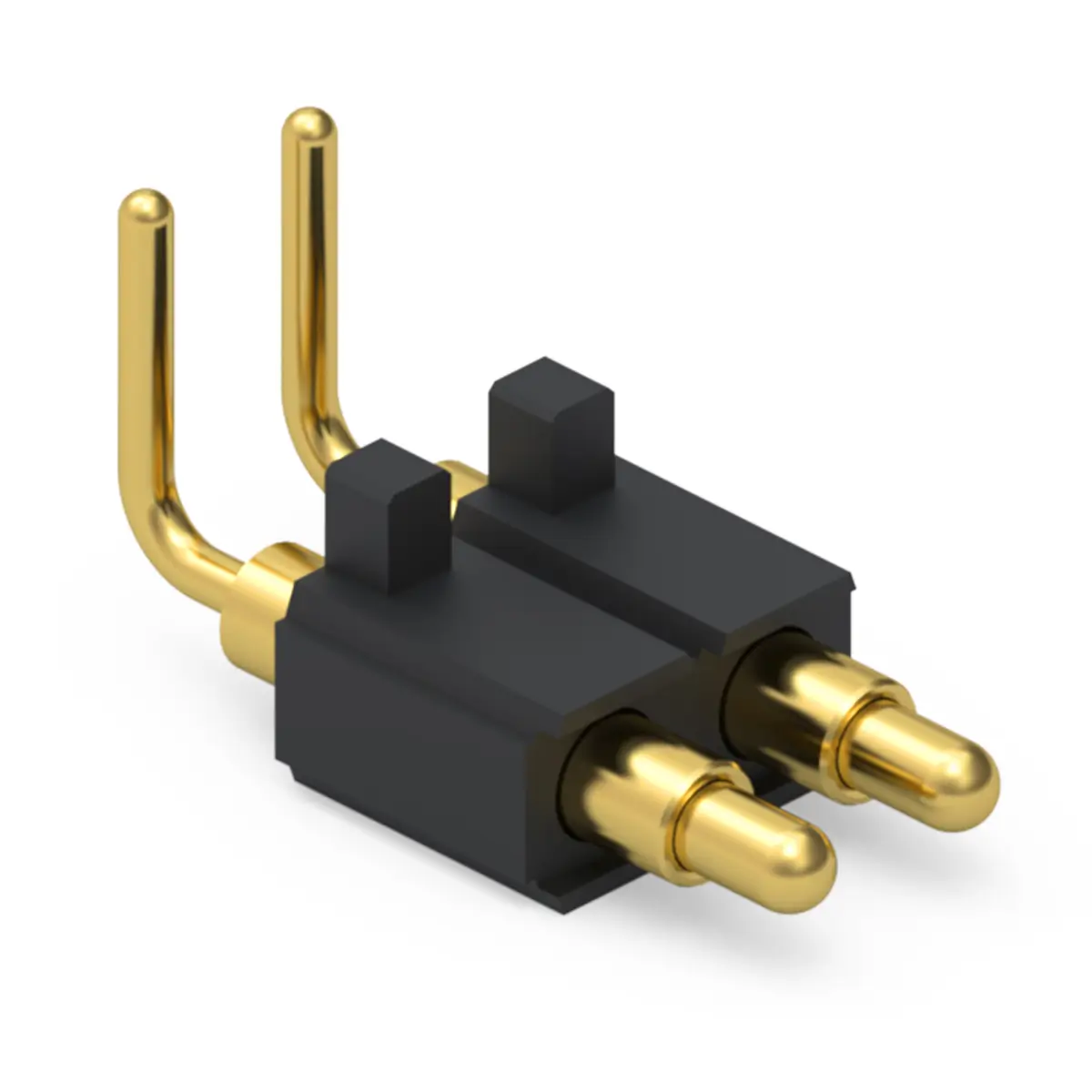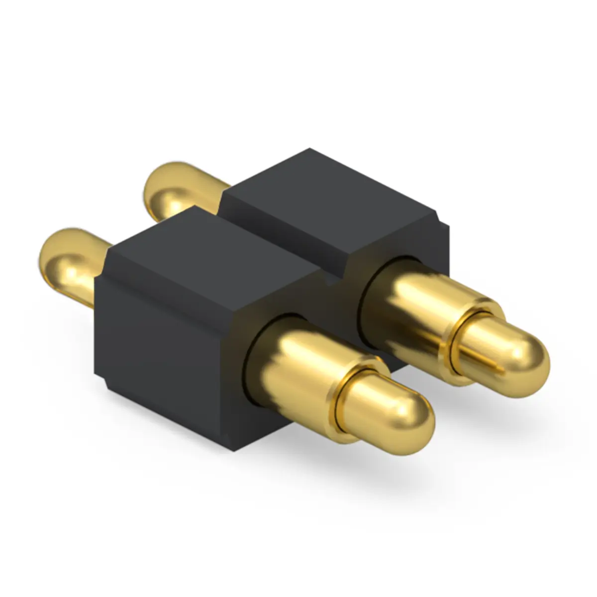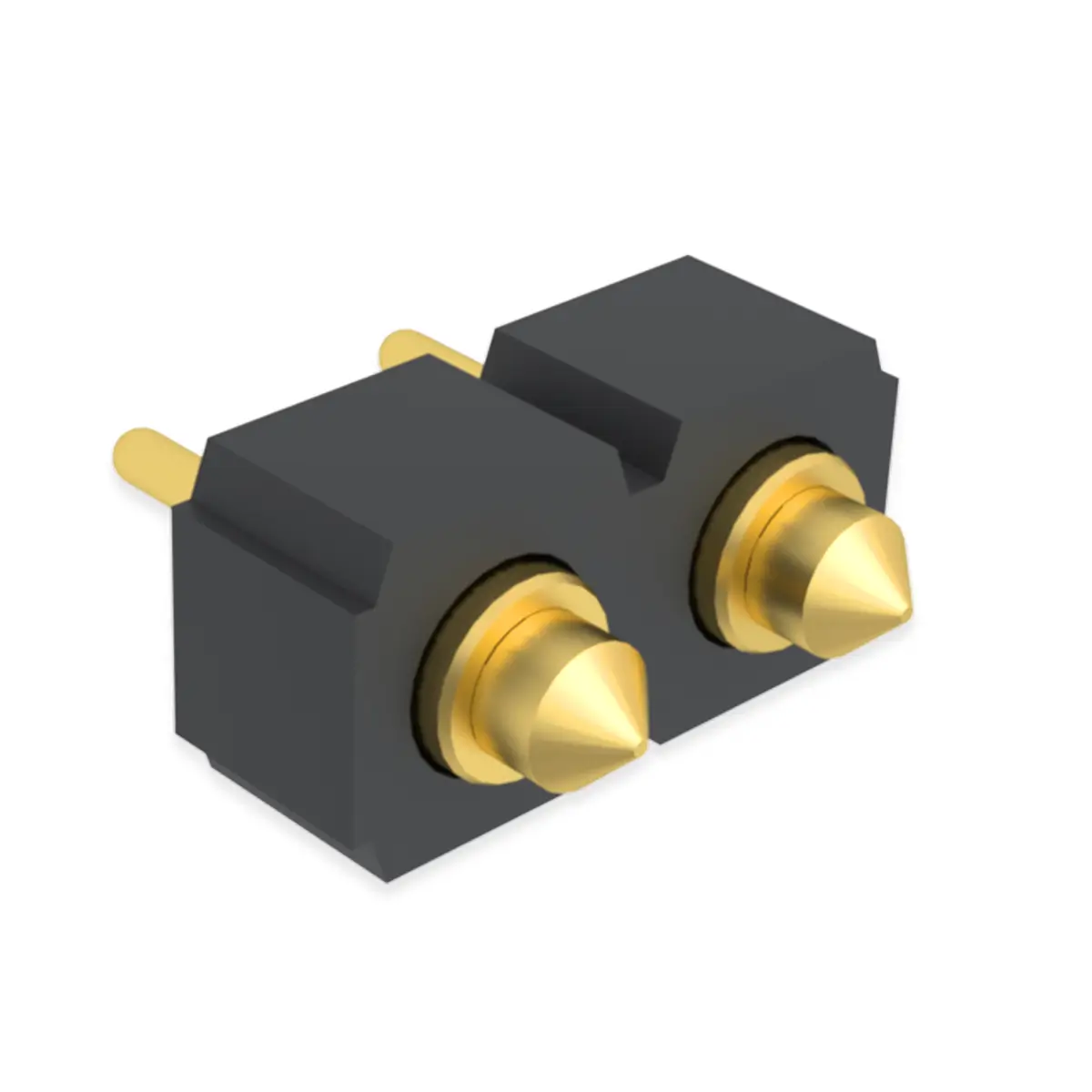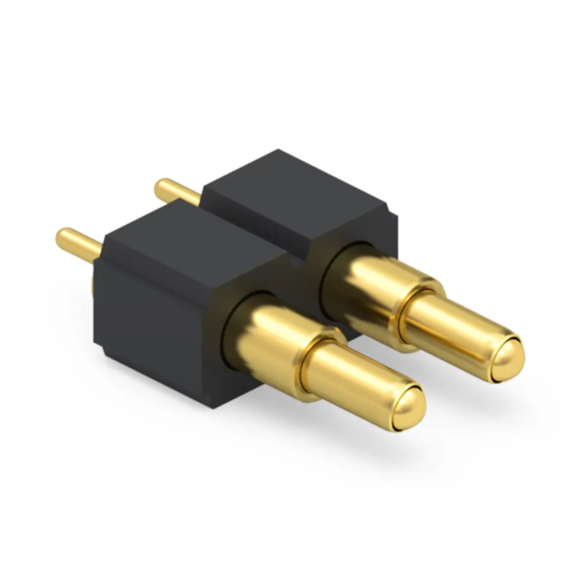 Pogo pin connector is a compact, spring loaded contact module containing two independent conductive pins in a single housing. Each pin comprises a movable plunger, an internal compression spring, and a surrounding barrel; together they form repeatable, low profile electrical contacts that engage by axial compression rather than rigid mechanical mating. Because each pin compensates for tolerance, misalignment, and vibration, two pin modules are widely used for board to board interfaces, charging docks, test fixtures, and removable modules requiring frequent mating cycles. They support signal, ground, or power duties depending on size and plating, and are offered in through hole, SMD, and hybrid mounting styles to suit assembly methods.