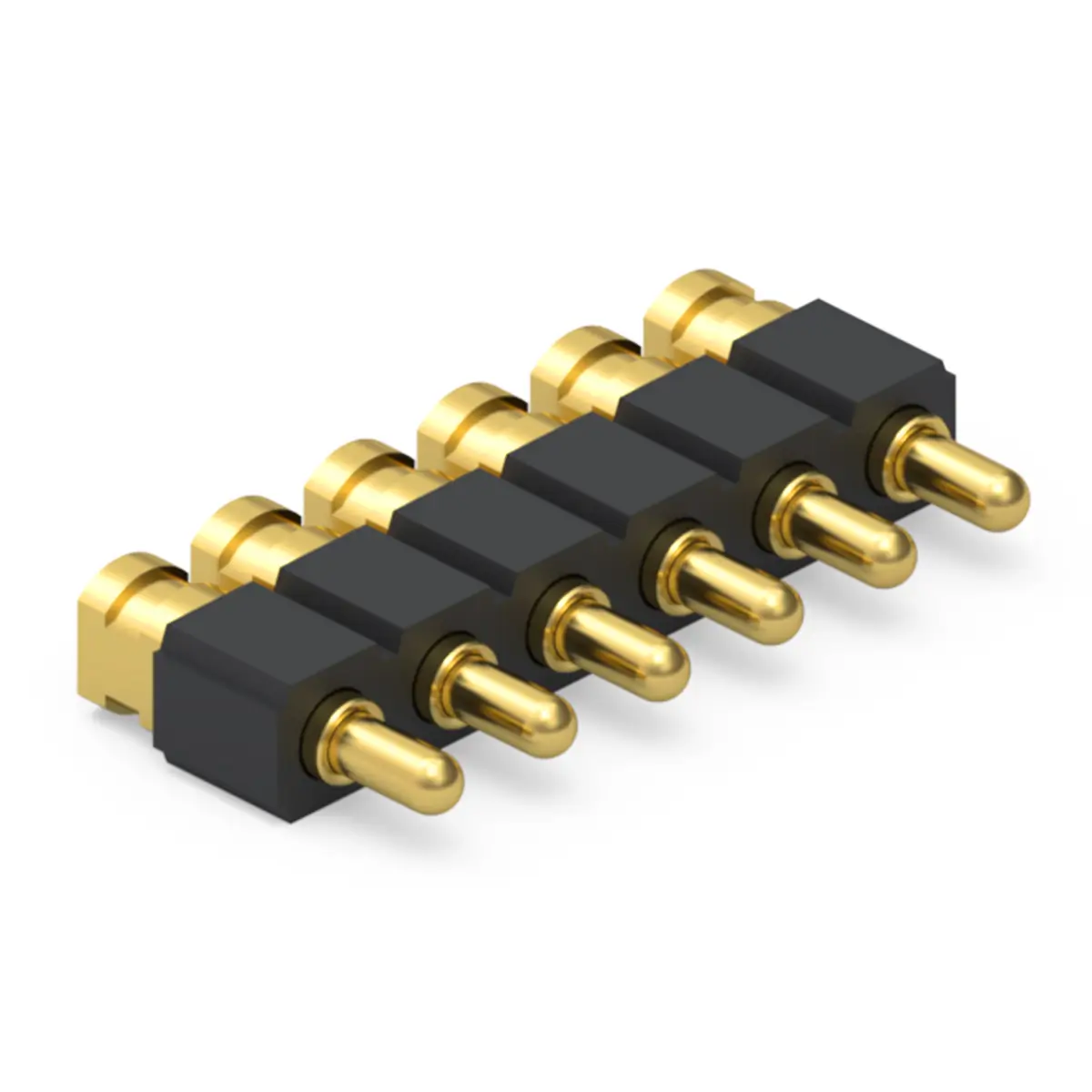 6 pin spring connector functions by converting mechanical compression into a highly reliable electrical connection. When a mating surface engages the six plungers, each internal spring compresses, exerting a precise force that presses the plunger against its corresponding contact pad. This action establishes intimate metal to metal contact, effectively breaking through any surface films or contaminants. The independent movement of each spring loaded pin allows the connector to accommodate minor misalignments and uneven mating surfaces, ensuring continuous electrical integrity. Upon disengagement, the springs return the plungers to their resting positions, ready for the next cycle. This mechanism yields consistent, low contact resistance and an extended operational lifespan.