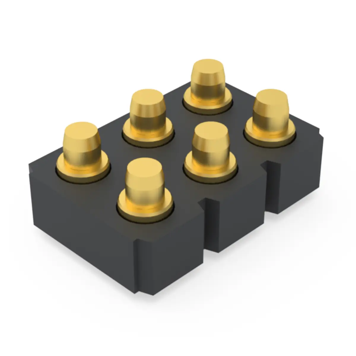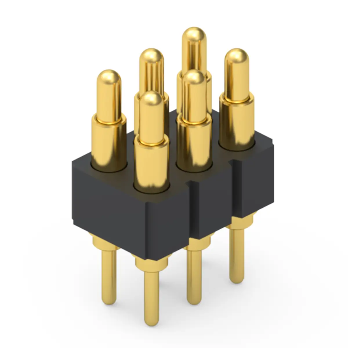 6 point pogo pin connector is an advanced, spring loaded contact module featuring six independent conductive pins within a single, compact housing. Each pin integrates a movable plunger, an internal compression spring, and a precision machined barrel, collectively forming reliable, low profile electrical contacts. These connectors engage through axial compression, offering superior performance over rigid mechanical mating. They are engineered to compensate for tolerance variations, minor misalignments, and vibrations, making them ideal for critical board to board interfaces, sophisticated charging docks, and high cycle test fixtures. Their robust design ensures consistent electrical continuity and mechanical integrity across numerous mating cycles, supporting diverse signal, ground, and power requirements.