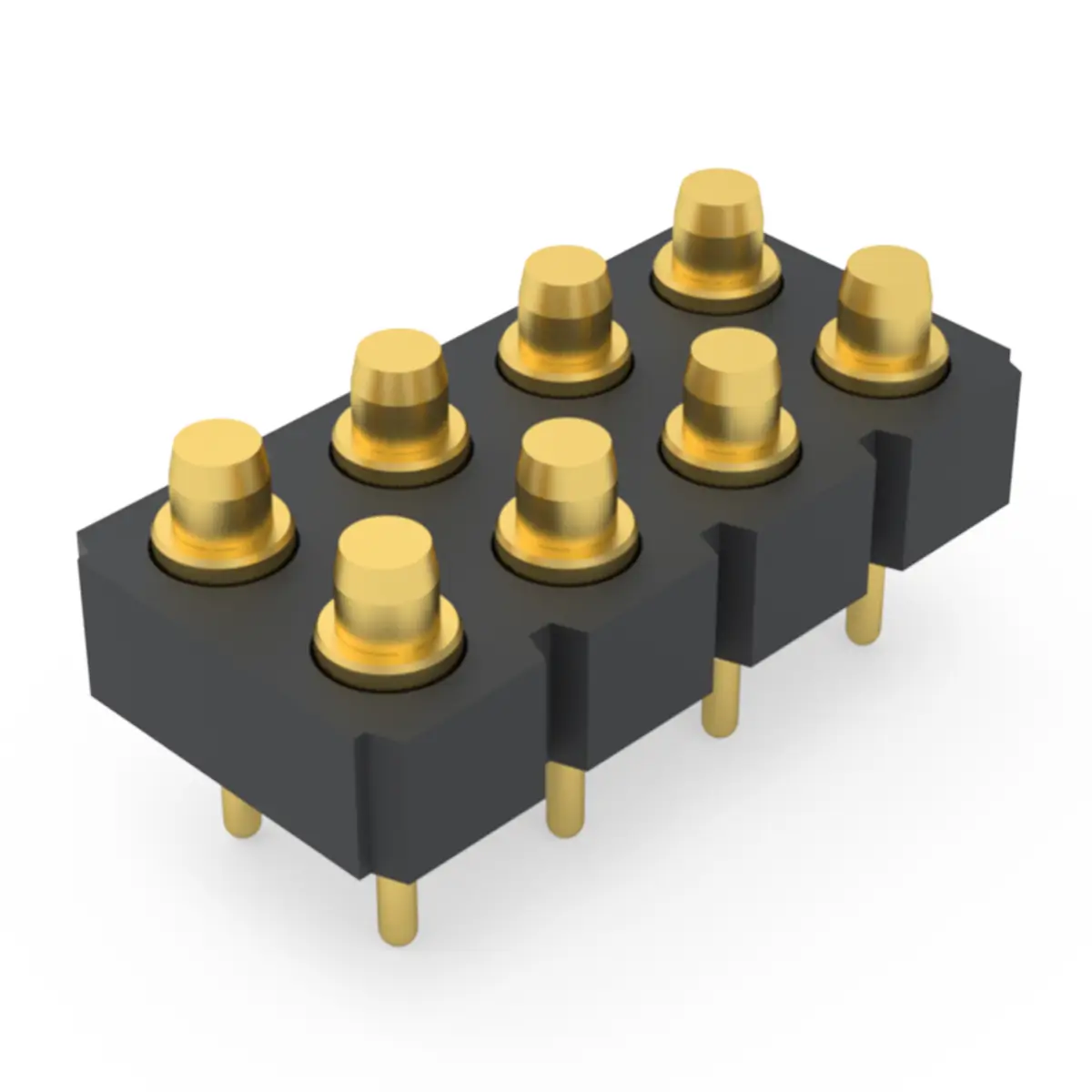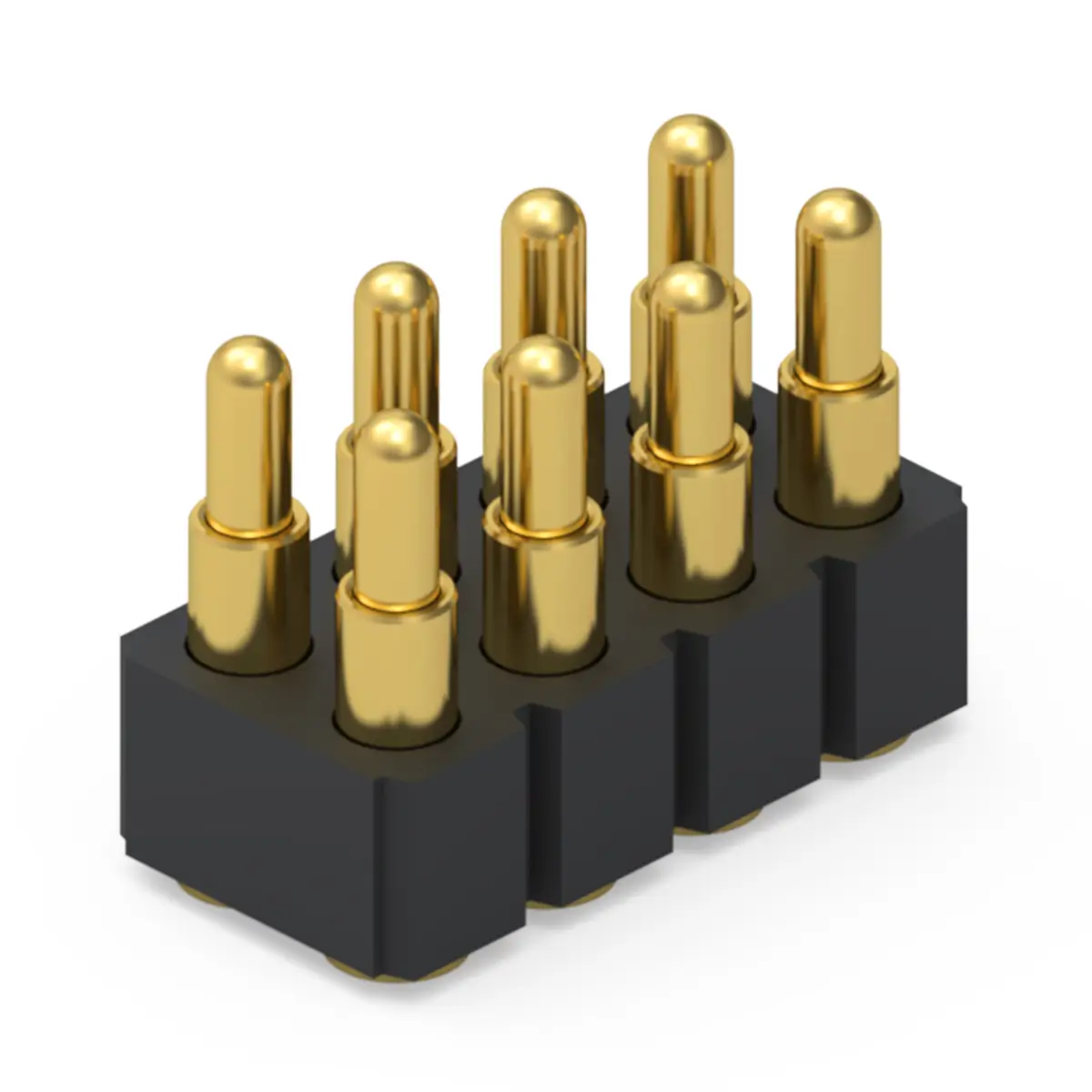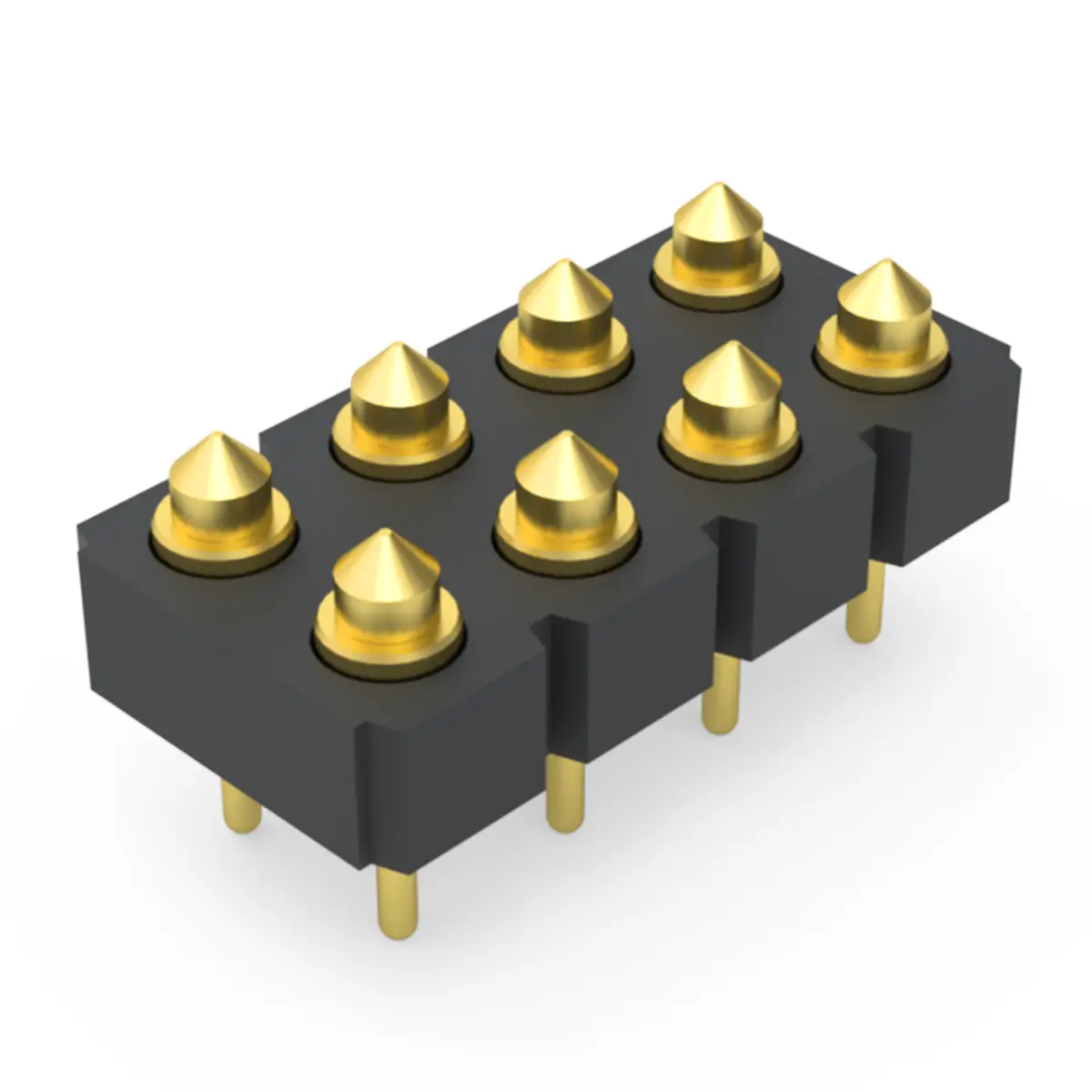 8 point pogo pin connector is a compact spring loaded contact module that integrates eight independent conductive pins in one body. Each pin has a sliding plunger inside a barrel with an internal spring, so connection happens through axial compression rather than rigid insertion. This structure helps the connector tolerate minor misalignment, vibration, and variation in stack height. It is widely used for charging docks, data interfaces, board to board connections, and test fixtures where frequent mating is required. The design supports quick engagement and reliable repeatability in compact products.